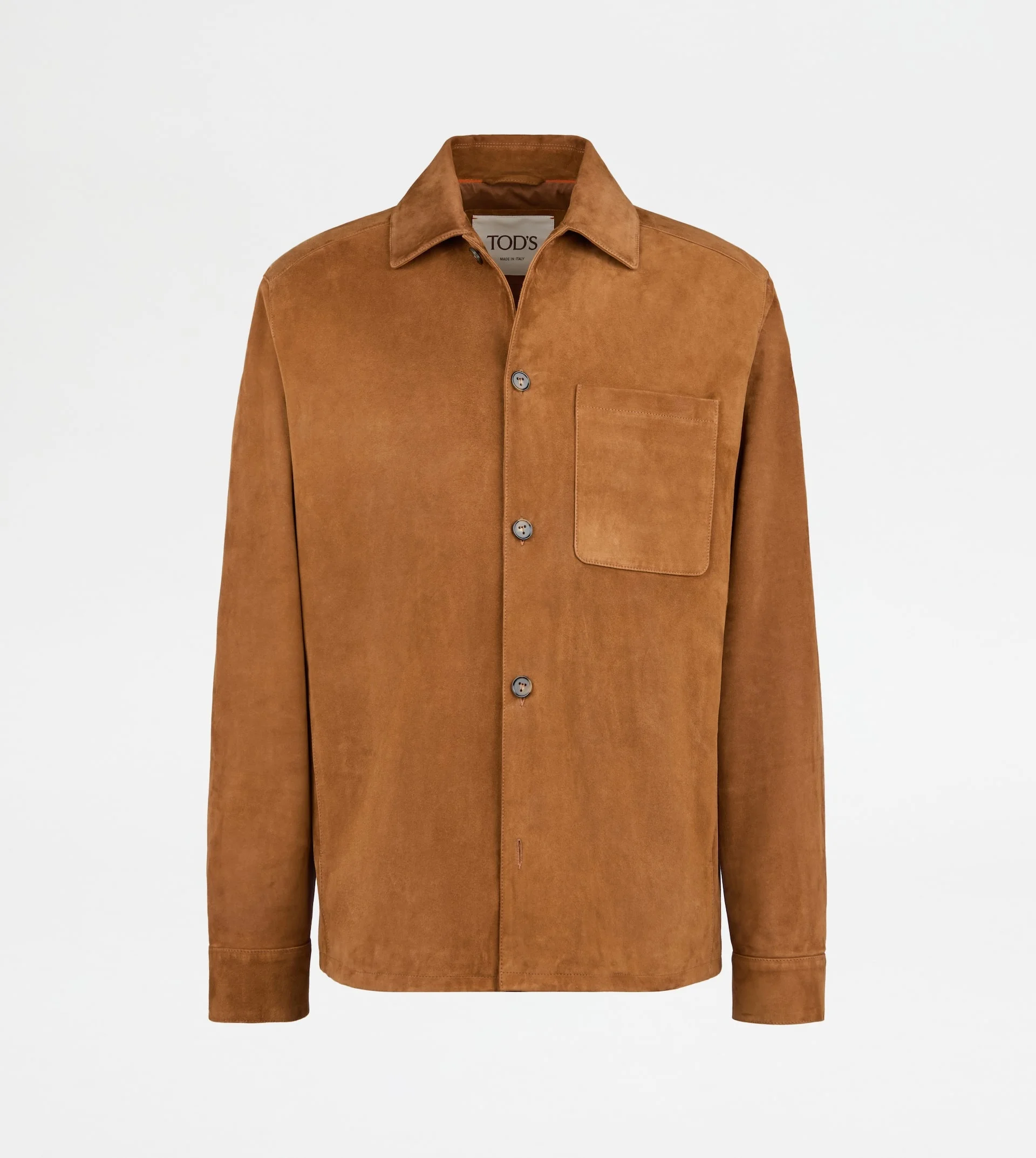 Shirt jacket in Pashmy suede with anti-drip and anti-stain treatment. A unique material with an exceptional softness, lightweight thanks to its thin thickness yet compact and resistant. Featuring a patch upper pocket and two welt lower pockets, the jacket comes with buttons with the distinctive T-stitching and brand's monogram hand-embroidered on the back. - Made in Italy - Suede jacket - Fitting: regular - Item composition: 100% ovine leather, interior100% cotton, sleeve lining 100% cupro (striped jacquard twill) - Maintenance and care cards included