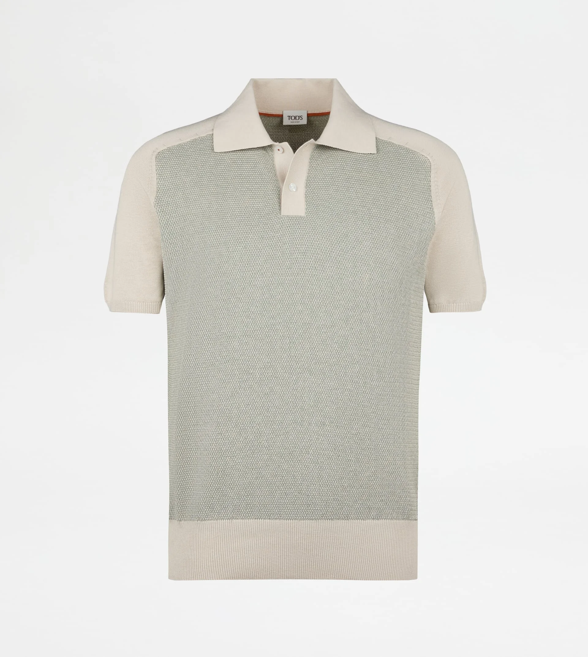 Raglan-cut short-sleeved polo shirt, crafted in a soft silk and shaved knit cotton yarn, recalling the tradition of tennis garments. Featuring two branded buttons, it comes with the leather Tod's tag on the back. A fresh and versatile garment, perfect from the office to the weekend thanks to its sober and functional style. - Made in Italy - Short-sleeved polo shirt - Fitting: regular - Item composition: 55% silk, 45% cotton, leather detailing - Maintenance and care cards included