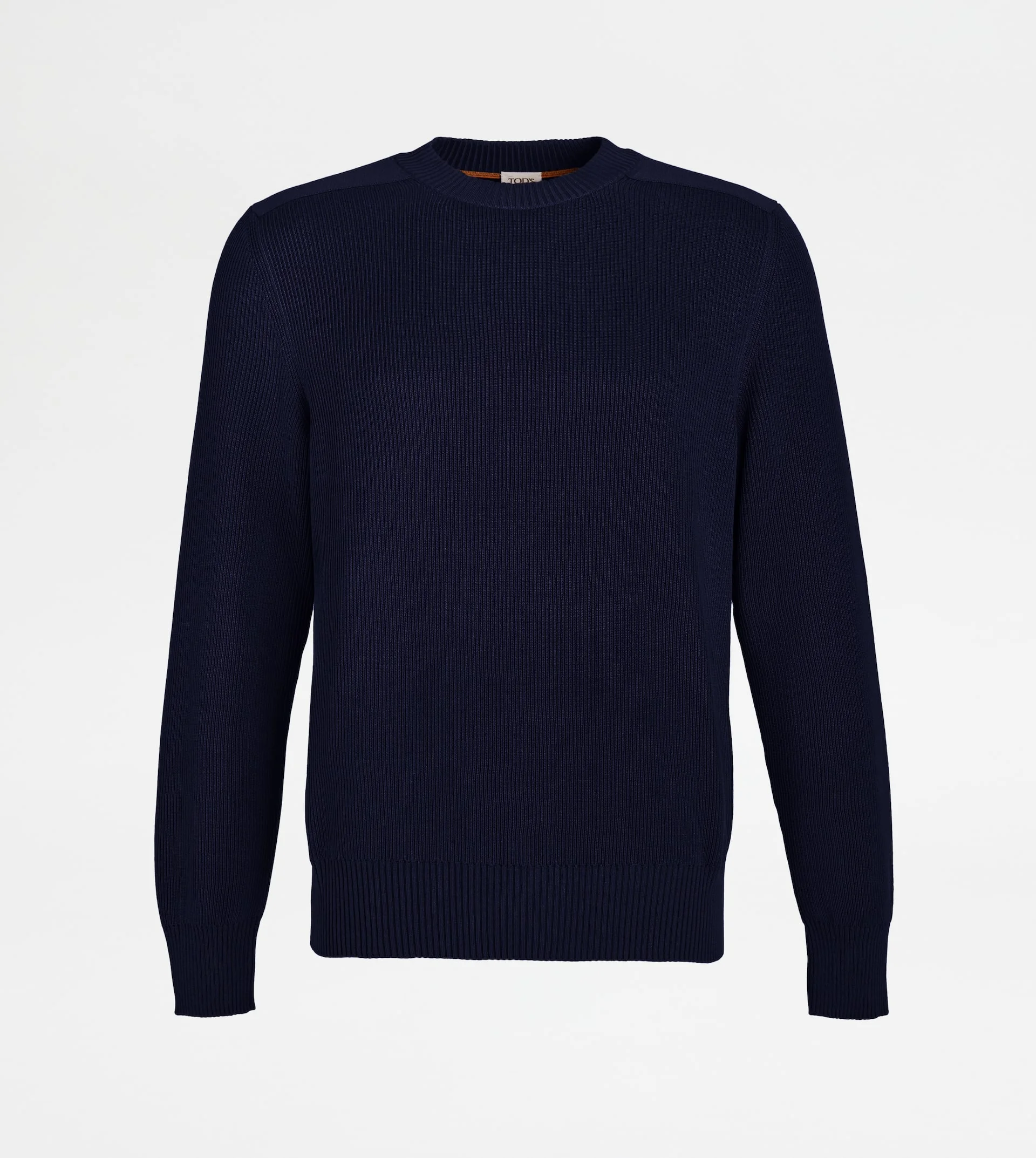 Round-neck pullover in refined silk and cotton ribbed knit. A versatile garment with a sober style, featuring the leather Tod's tag on the back. - Made in Italy - Round-neck pullover - Fitting: regular - Item composition: 55% silk, 45% cotton, leather detailing - Maintenance and care cards included