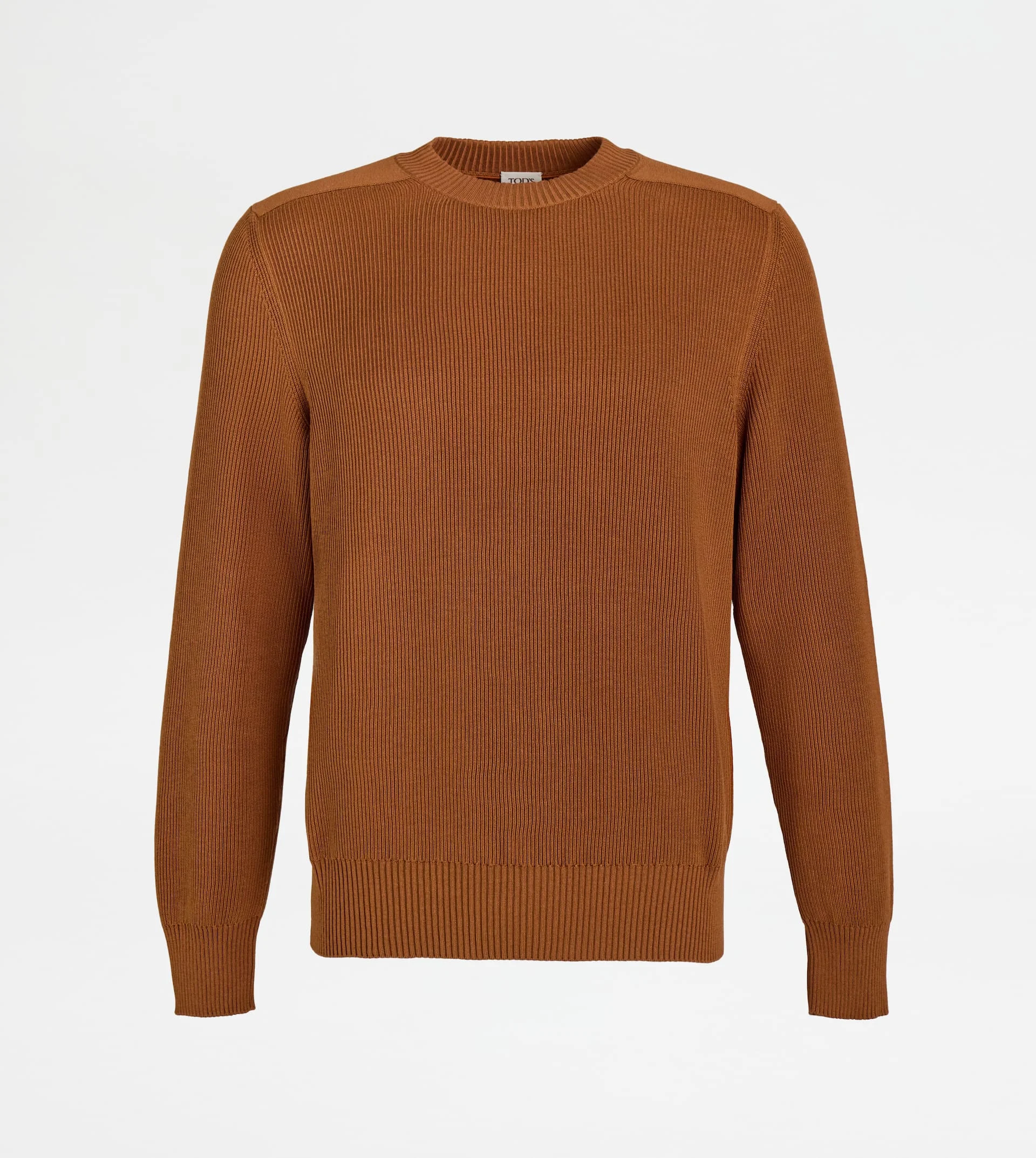 SILK BLEND ROUND-NECK PULLOVER - BROWN