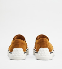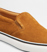 Slip-ons in velvety suede with stamped Tod's monogram, side elastic inserts, rubber pebble detailing on the heel and rubber outsole with contrasting piping. - Made in Italy - Men's Tod's Slip-ons - Suede upper - Stamped Tod's monogram - Side elastic inserts - Rubber cupsole with embossed rubber pebbles at the ends - Maintenance and care cards included - Branded dustbag