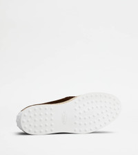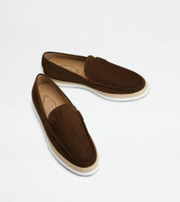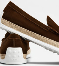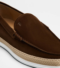 Slip-ons in velvety suede with stamped Tod's monogram and exposed stitching. Rubber outsole with embossed rubber pebbles and handcrafted raffia weaving. - Made in Italy - Men's Tod's Slip-ons - Suede upper - Stamped Tod's monogram - Exposed stitching - Rubber pebble detailing on the heel - Rubber outsole with embossed rubber pebbles - Handcrafted raffia weaving profile - Maintenance and care cards included - Branded dustbag