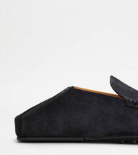 Loafers in slipper version, crafted in soft calfskin suede, with Tod's logo stamped on the side and exposed stitching. Characterized by a reclining heel, they come with a horseshoe-shaped heel and iconic Tod's outsole. - Made in Italy - Tod's Slipper Loafers - Calfskin suede upper - Exposed handmade stitching - Stamped Tod's logo - Leather lining and insole - Iconic Tod's outsole - Maintenance and care cards included - Branded dustbag