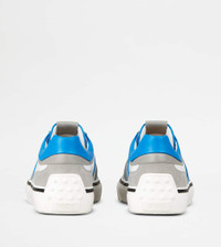 SNEAKERS IN LEATHER - GREY, WHITE, LIGHT BLUE