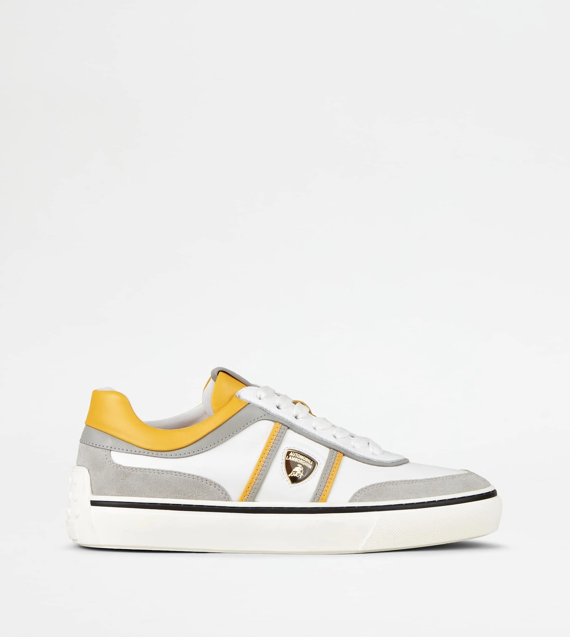 Sneakers in smooth leather with suede inserts, Tod's logo stamped on the tongue and Automobili Lamborghini logo on the side. Featuring a rubber outsole with contrasting piping, they come with the iconic rubber pebbles on the heel. An original synthesis of traditional craftsmanship and innovation, the result of a collaboration under the sign of the most exclusive Italian lifestyle. - Made in Italy - Men's Tod's Sneakers - Tod's for Automobili Lamborghini - Smooth leather upper - Suede inserts - Tod's logo stamped on the tongue - Automobili Lamborghini logo insert on the side - Rubber pebble detailing on the heel - Rubber cupsole with embossed rubber pebbles at ends