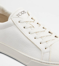 A sober and sophisticated taste characterizes these sneakers with minimal lines, with Tod's logo on the tongue. Crafted in natural-grained calfskin leather, they come with a rubber outsole with embossed rubber pebbles. - Made in Italy - Men's sneakers - Calfskin leather upper - Tod's logo stamped on the tongue - Leather insole - Rubber outsole with embossed rubber pebbles - Maintenance and care cards included - Branded dustbag - Additional laces included