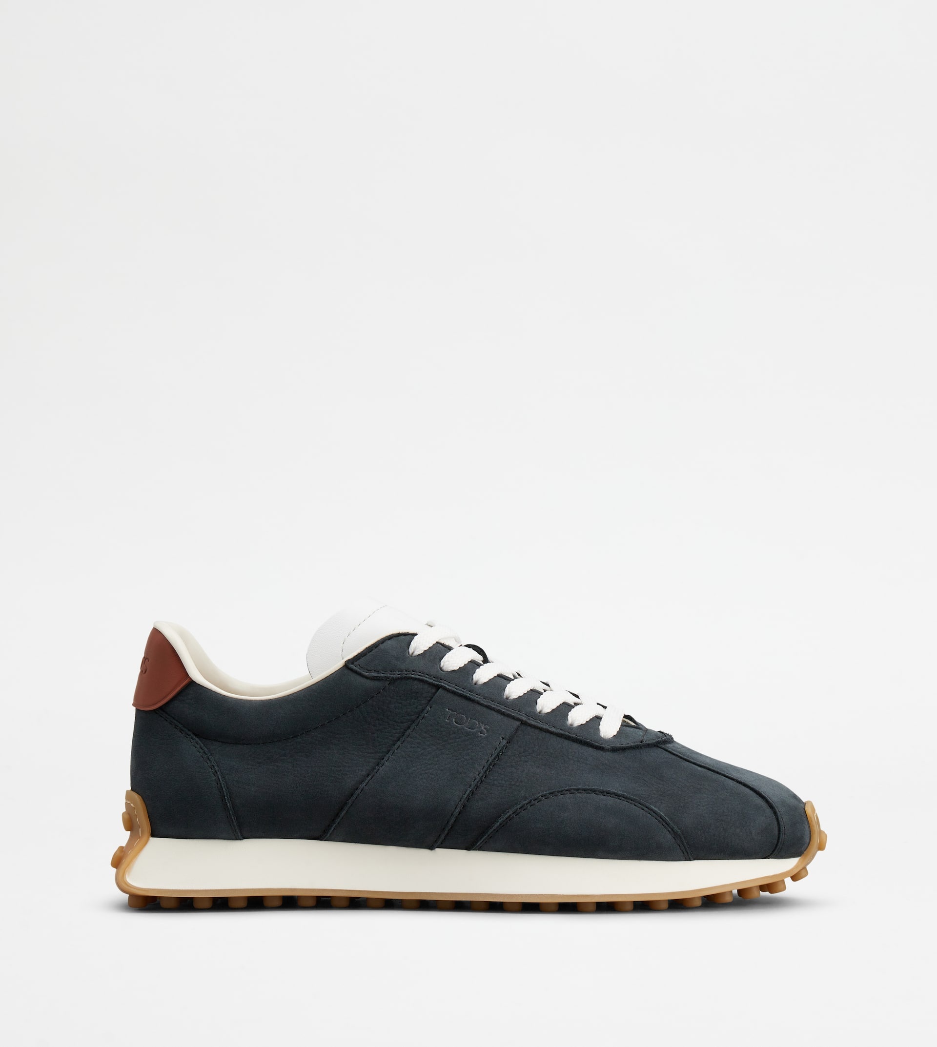 A sporty and sophisticated taste characterizes these new sneakers with Tod's logo stamped on the side. Crafted in nubuck, they come with a rubber outsole with embossed rubber pebbles, rubber pebble detailing on the front and back. - Made in Italy - Men's Sneakers - Nubuck upper - Calfskin leather inserts - Stamped Tod's logo - Leather insole - Rubber outsole with embossed rubber pebbles - Maintenance and care cards included - Branded dustbag - Additional laces included
