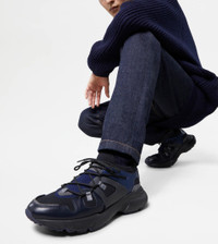 SNEAKERS IN LEATHER AND TECHNICAL FABRIC - BLUE