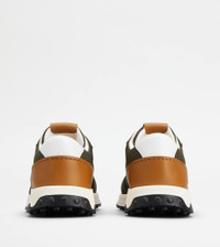 SNEAKERS IN LEATHER AND TECHNICAL FABRIC - BROWN, GREEN