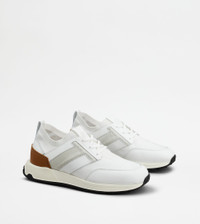 SNEAKERS IN LEATHER AND TECHNICAL FABRIC - WHITE
