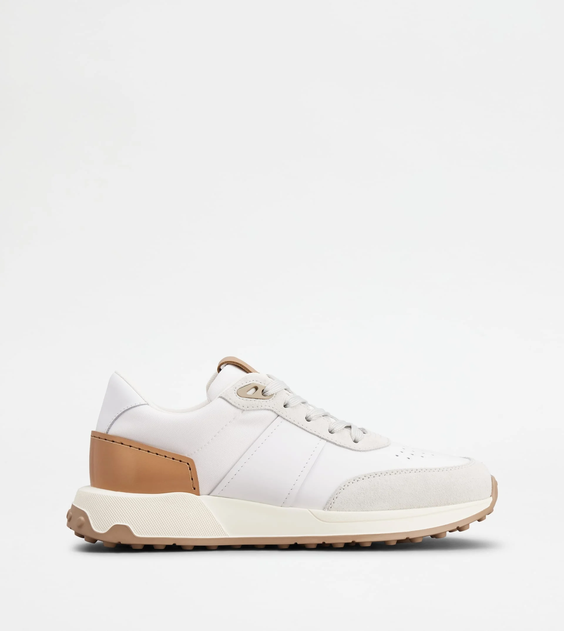 SNEAKERS IN LEATHER AND TECHNICAL FABRIC - WHITE, BROWN