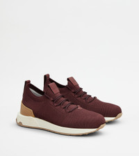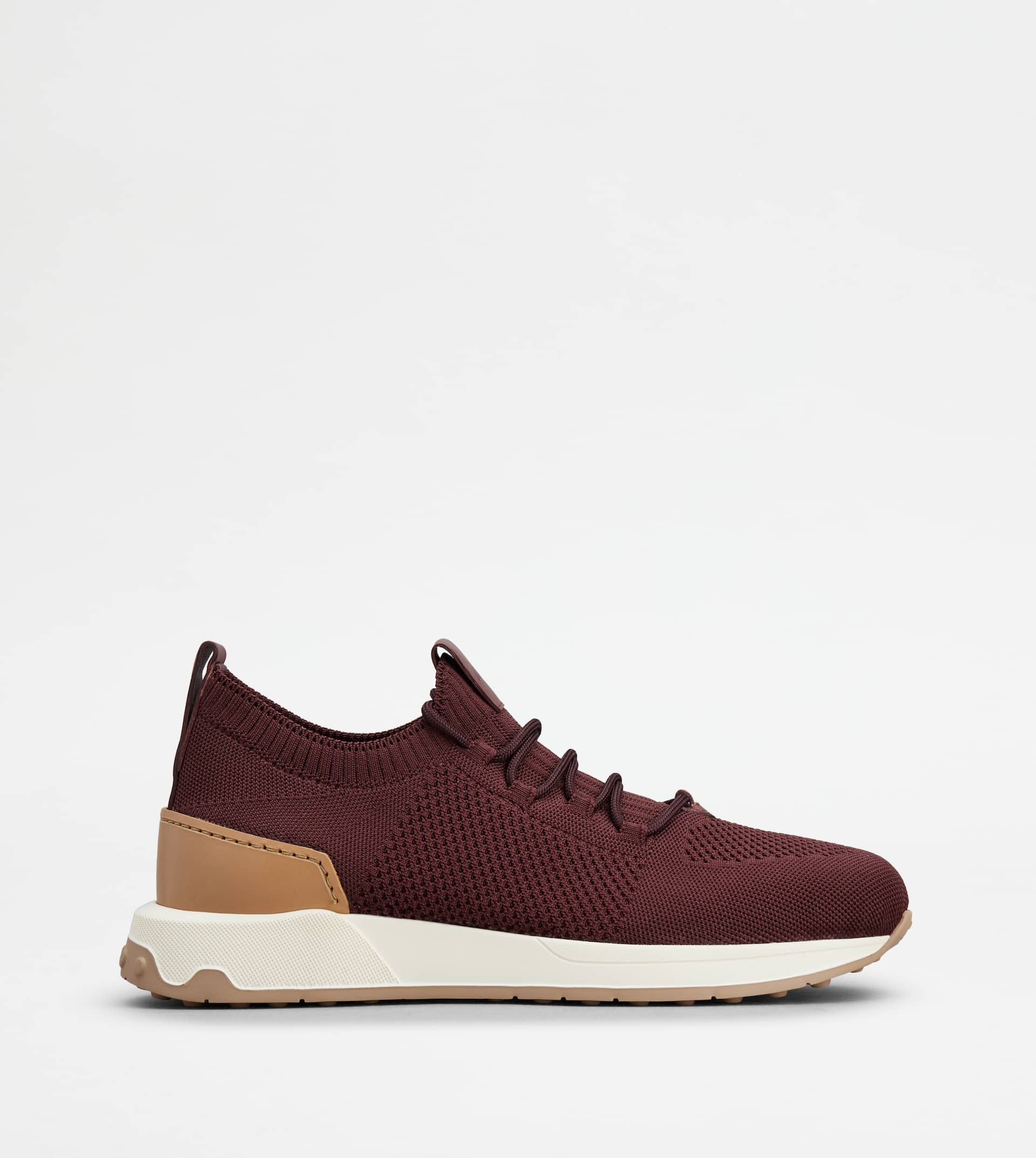 SOCK SNEAKERS IN TECHNICAL FABRIC AND LEATHER - BURGUNDY