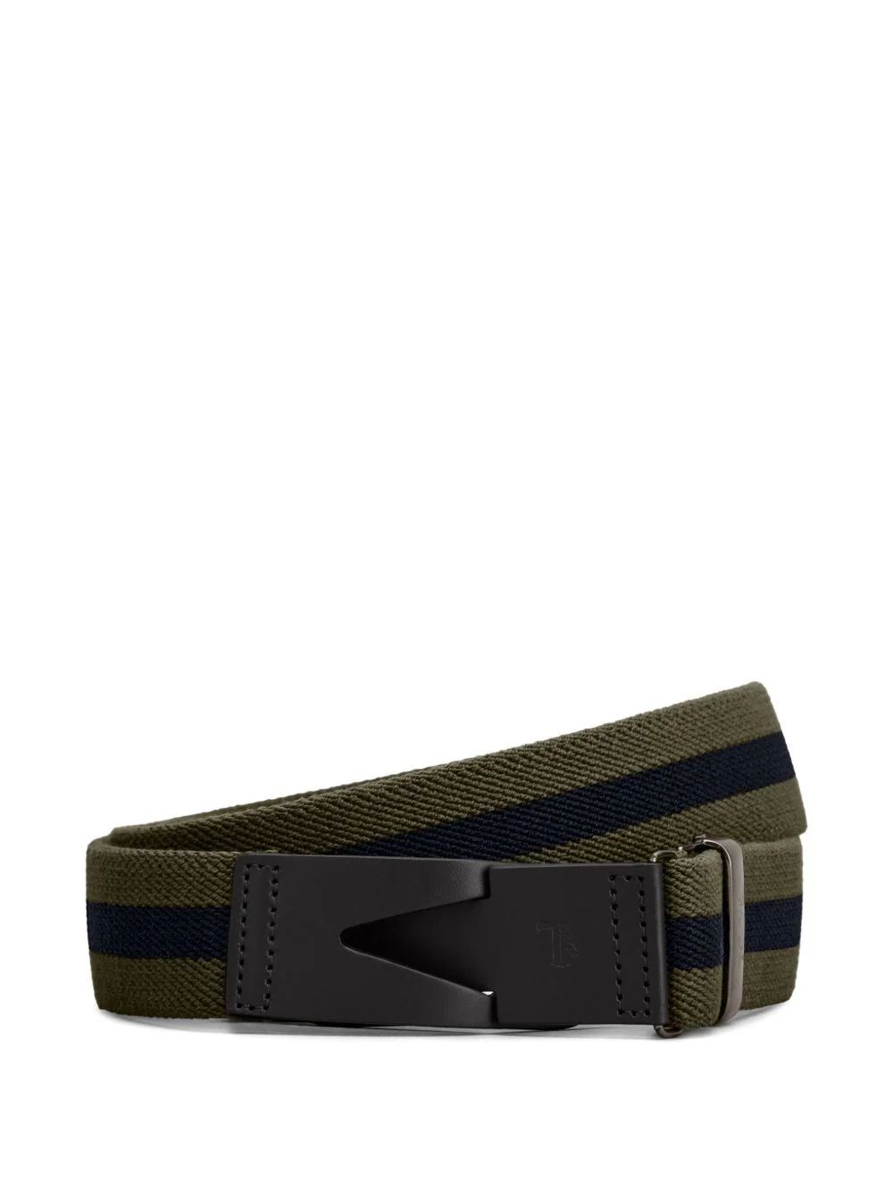 striped belt Highlights - Olive green - Striped pattern - Triangular keeper - Debossed logo Made in Italy Composition Fabric 100%, Metal 100%
