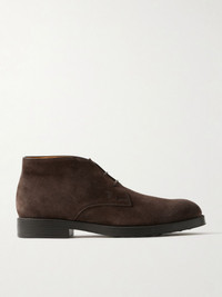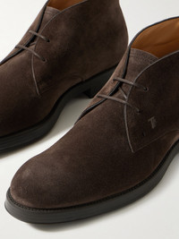Tod's desert boots are smart enough to wear with tailored trousers—though they'll look just as good with jeans or cuffed chinos. They've been made in Italy from dark-brown suede and feature signature embossed rubber 'pebbles' for traction. Size & Fit Fits true to size, please refer to Tod’s size guide below: - UK 6.5 = US 8/ EU 40 - UK 7 = US 8.5/ EU 40.5-41 - UK 7.5 = US 9/ EU 41-41.5 - UK 8 = US 9.5/ EU 42 - UK 8.5 = US 10/ EU 42.5-43 - UK 9 = US 10.5/ EU 43-43.5 - UK 9.5 = US 11/ EU 44 - UK 10 = US 11.5/ EU 44.5 - UK 10.5 = US 12/ EU 45-45.5 - UK 11 = US 12.5/ EU 45.5-46 - UK 11.5 = US 13/ EU 46.5 - UK 12 = US 13.5/ EU 47 - UK 12.5 = US 14/ EU 47.5-48 - UK 13 = US 14.5/ EU 48-48.5 Details & Care - Dark-brown suede (Calf) - Lace-up - Tod's follows its own size guide, therefore the size stated on the box will differ from the one provided in our size chart. To receive your correct fit, please refer to Size & Fit notes