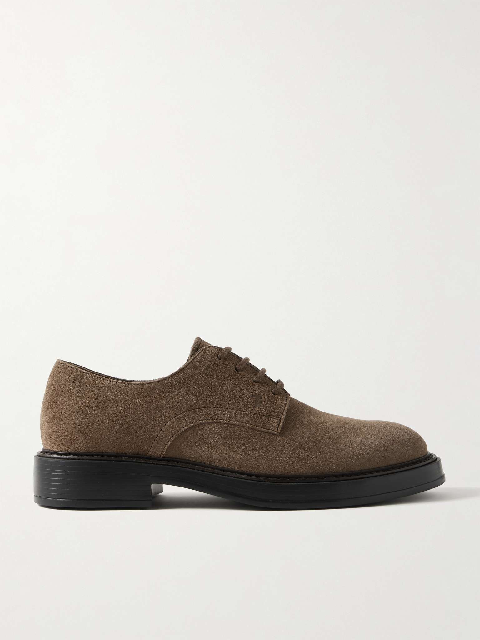 Traditional Derby shoes will never go out of style, so it's worth investing in a made-to-last pair like Tod's. Crafted from suede, they have a silver-tone logo plaque threaded through the tonal laces and are set on stacked rubber soles. Size & Fit - Fits true to size. Take your normal size - UK sizing Details & Care - Army-green suede (Lamb) - Come with dust bags