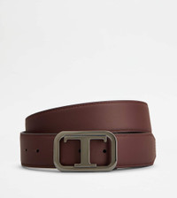 T TIMELESS ADJUSTABLE AND REVERSIBLE BELT IN LEATHER - BLACK, BURGUNDY