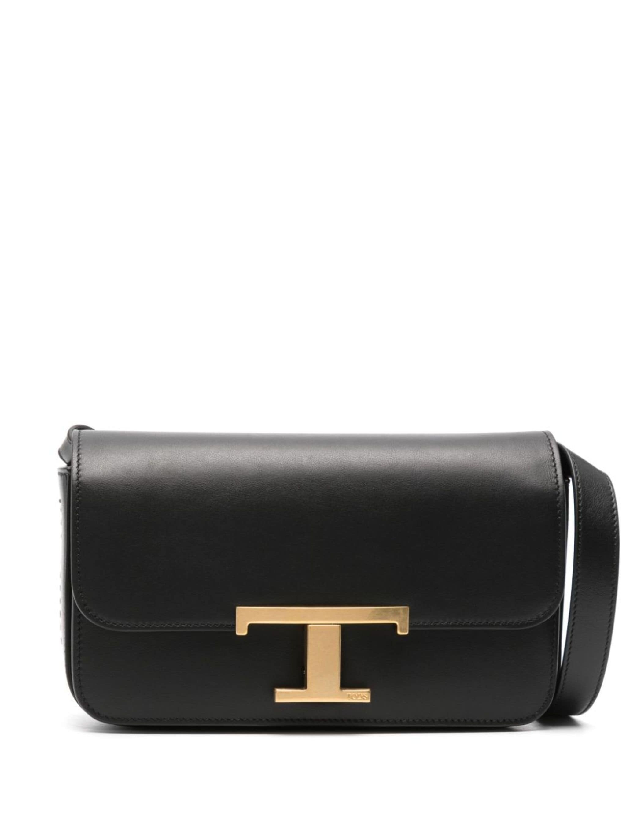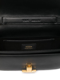 black calf leather smooth grain logo-buckle detail foldover top adjustable shoulder strap main compartment internal slip pocket internal logo tag full lining logo-engraved gold-tone hardware push-lock fastening This piece comes complete with a protective dust bag. Size & Fit Model Measurements: Bust: 0cm Height: 0cm Hips: 0cm Waist: 0cm DEPTH: 4cm HEIGHT: 13cm STRAP: 144cm WIDTH: 23cm Fabric and Care Designer Style ID: XBWTTTC0000ROR Designer Colour: B999 NERO Composition: Outer: Calf leather 100%Made in Italy
