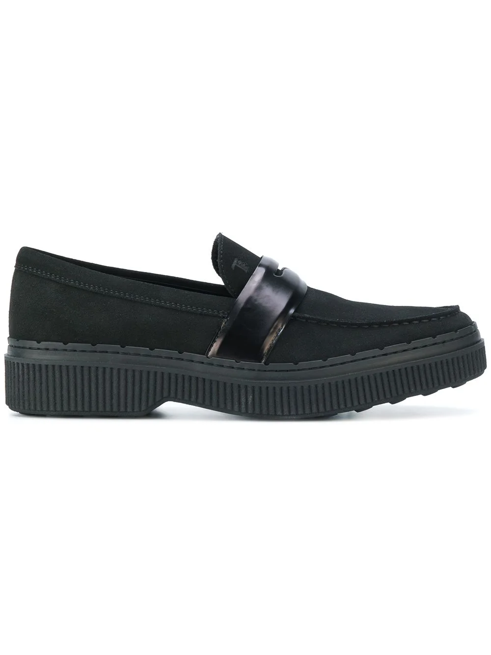 thick sole loafers No outfit is complete without the finishing touches and these timeless loafers from Tod’s are sure to elevate your everyday wardrobe. These edgy black leather and suede thick sole loafers feature a chunky heel, a slip-on style, a round toe and an internal logo stamp. Made in Italy Composition Sole: Rubber 100% Outer: Leather 100%, Suede 100% Lining: Leather 100% SIZE & FIT Measurement Sole height 0.78 in(2 cm) HEEL 1.18 in(3 cm)