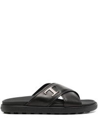 Timeless leather sandals Tod's expert craftstmanship and penchant for refined aesthetics are evidenced with these Timeless sandals. They are made from smooth black leather and finished with a tonal logo plaque at the side. Highlights - Black - Leather - Slip-on style - Branded footbed - Tonal logo plaque - Open toe - Flat rubber sole Made in Italy Composition Sole: Rubber 100% Lining: Leather 100%, other fibers 100% Outer: Leather 100% SIZE & FIT Measurement Sole height 0.78 in(2 cm)
