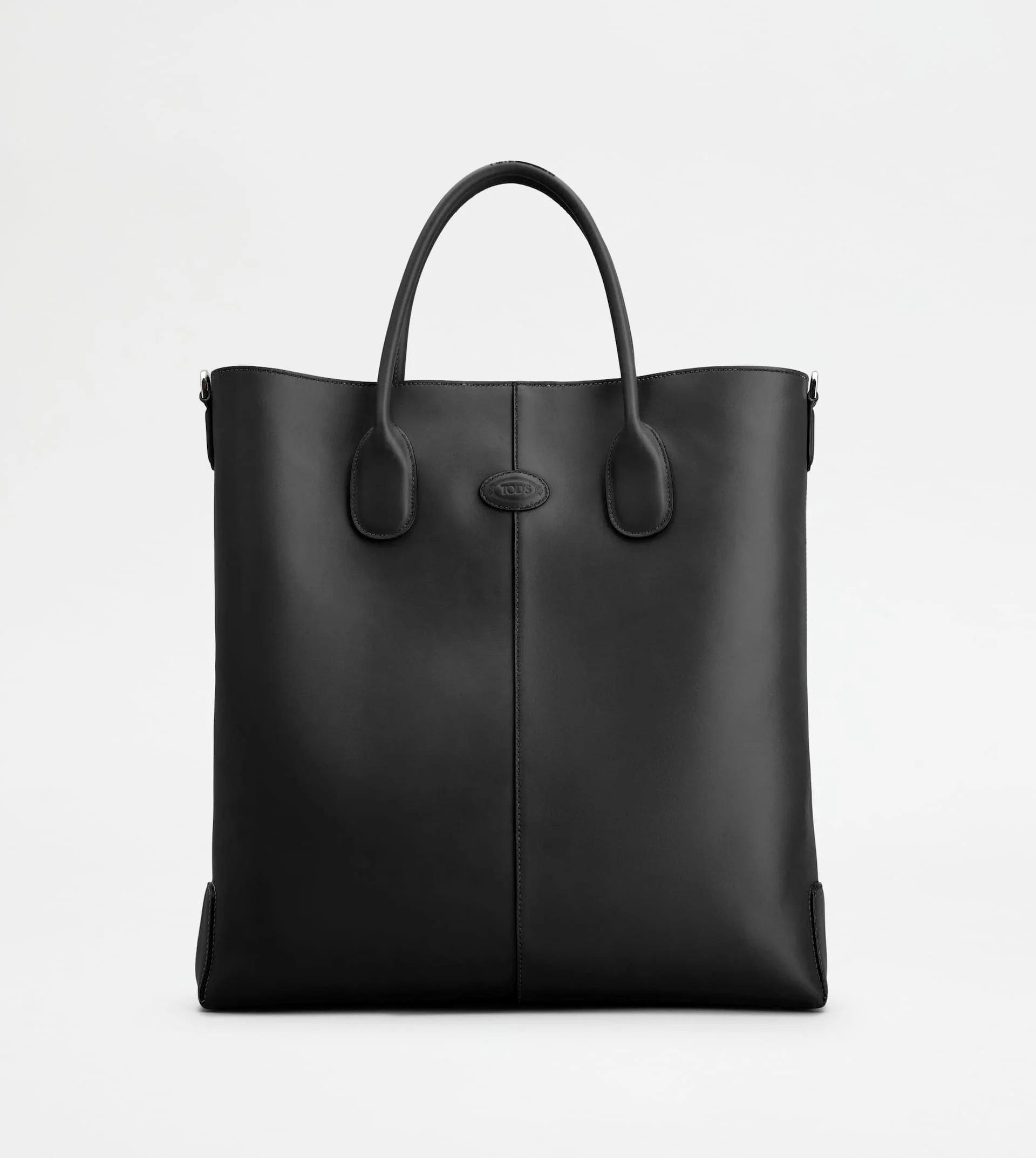Tod's Di Bag Tote Bag is characterized by the iconic central ribbing and oval with Tod's logo. Crafted in soft calfskin leather, it features fixed tubular handles and a removable shoulder bag in fabric. Complemented by an internal zipped pouch, it accompanies your everyday outfit with class. - Dimensions: L 15 ins x H 15.4 ins x D 3.5 ins - Handles: height (drop) 5.5 ins - Adjustable and removable shoulder strap: height max (drop) 26 ins, length max 53,1 ins - Made in Italy - Men's Tod's Di Bag Shopping Bag - Item crafted in calfskin leather - Tod's logo stamped on the front - Magnet closure - Zipped pouch in leather - Branded metal feet - Maintenance and care cards included - Branded dustbag