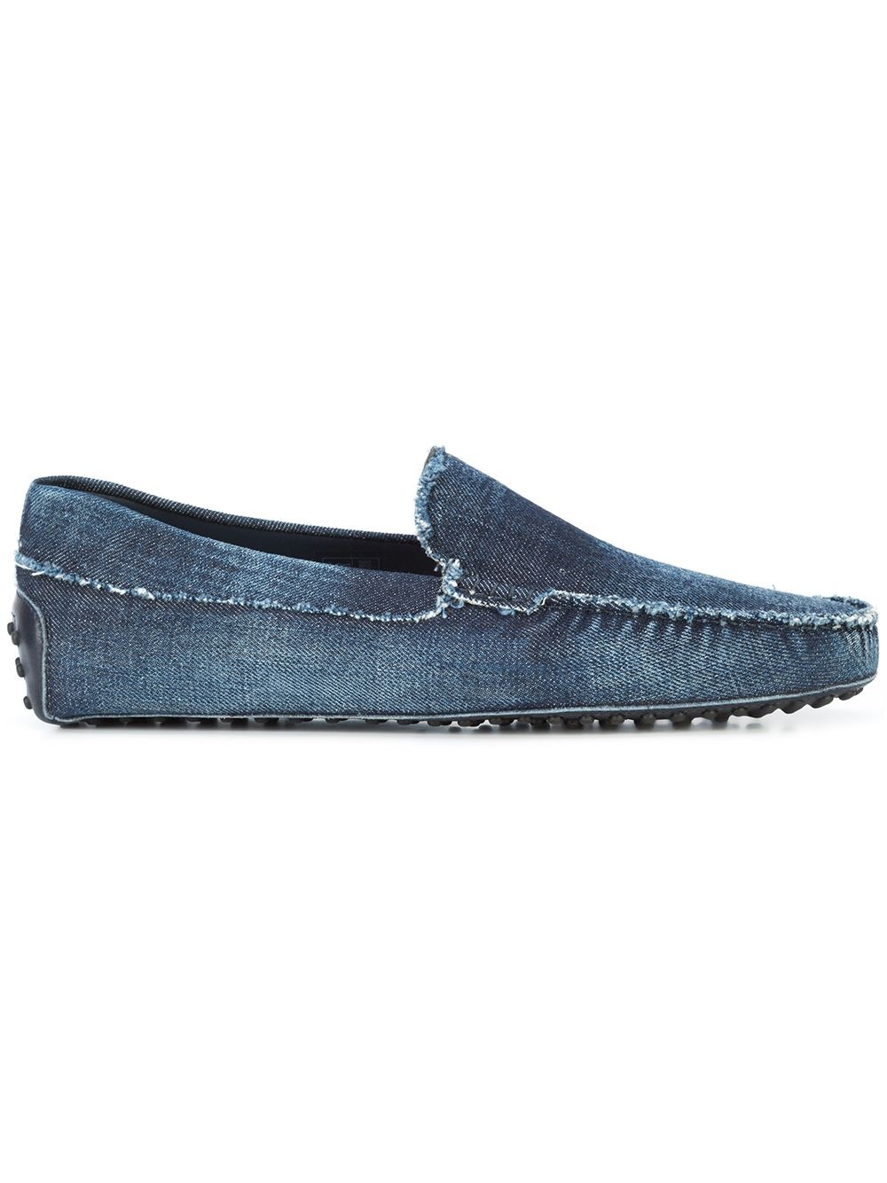 City Gommino driving shoes Tod's gives a modern update to their classics for yet another season of timeless sophistication. Expertly crafted in the label's Italian atelier from artfully frayed and distressed cotton-denim, these City Gommino driving shoes showcase the label’s understated simplicity with their sleek, round-toe silhouette, hand-stitched seams over the toes and a pebbled heel counter. Finished with a full leather lining, a brand embossed insole and rubber outsole dotted with the hallmark 133 pebbles or “gommini”, they’re a refined take on classic style. Made in Italy Composition Cotton 100% SIZE & FIT Measurement HEIGHT 3.34 in(8.5 cm)