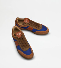 TOD'S TABS SNEAKERS IN SUEDE AND FABRIC - BROWN, BLUE
