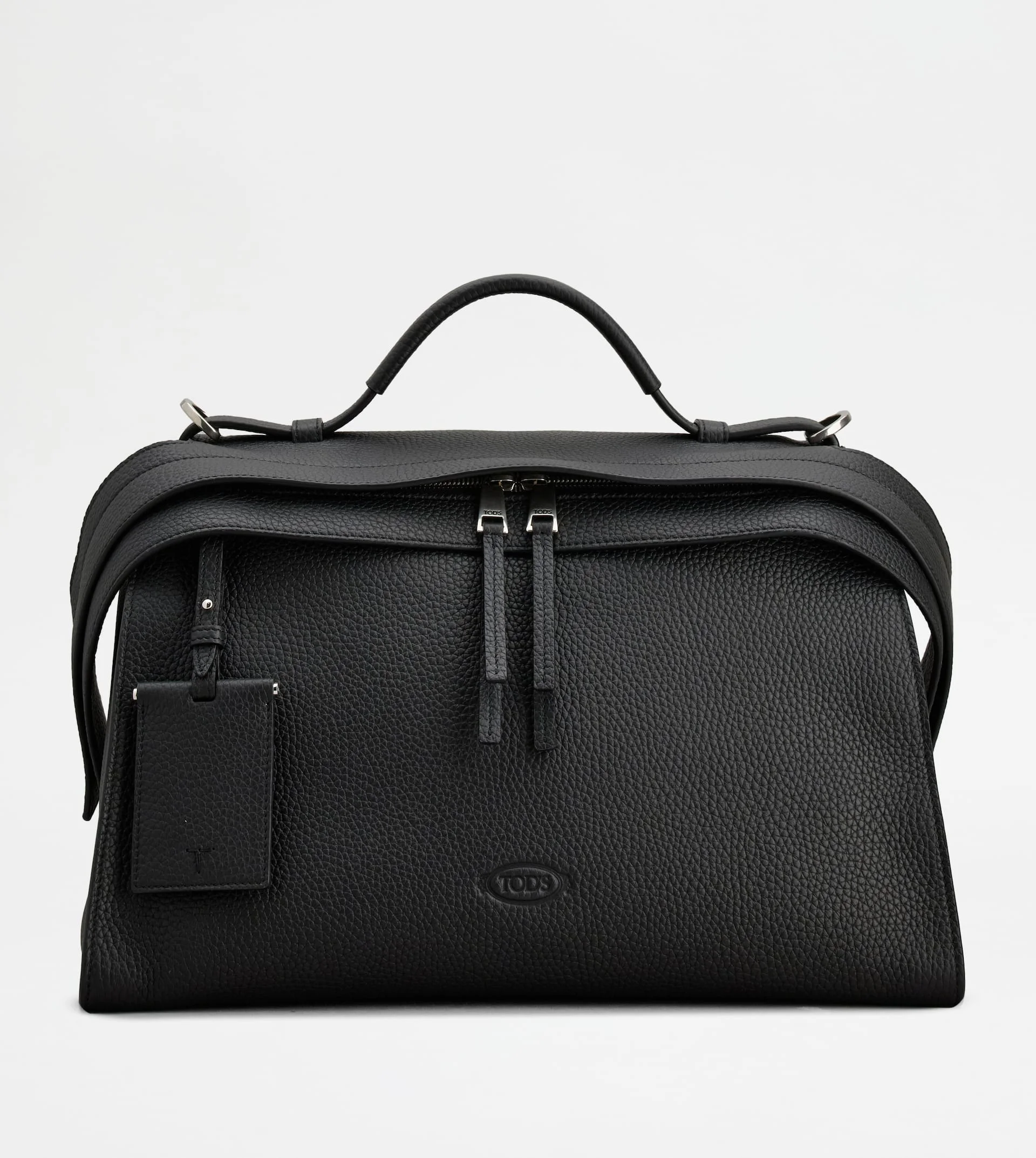 The iconic Tod's Wave Bag reinterpreted in a contemporary design with flowing and sophisticated lines. Crafted in exposed-grained leather, it comes with a practical concealed zip under the front strap, which can be fixed on the sides with snap buttons. Featuring a handle strap, it comes with an adjustable and removable shoulder strap in fabric. A detachable luggage tag complements the style. - Dimensions: L 15 ins x H 10.2 ins x D 7.3 ins - Handle: height (drop) 3 ins - Adjustable and removable shoulder strap: height (drop) 15-15.6 ins, length max 52 ins - Made in Italy - Bag in leather - Item crafted in bovine leather - Tod's logo stamped on the front - Removable luggage tag - T embroidered on the back - Double-slider zip closure - Cotton blend linen lining - Internal pocket - Branded metal feet - Maintenance and care cards included - Branded dustbag