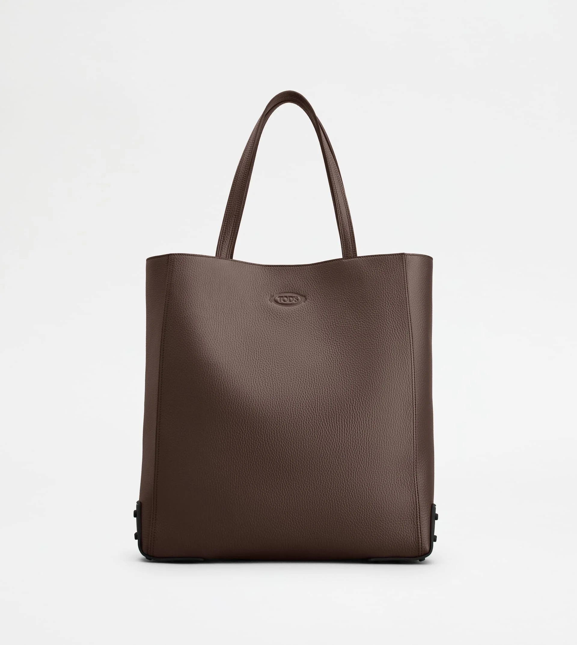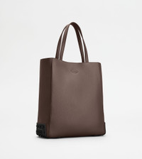 TOTE SHOPPING BAG IN LEATHER MEDIUM - BROWN