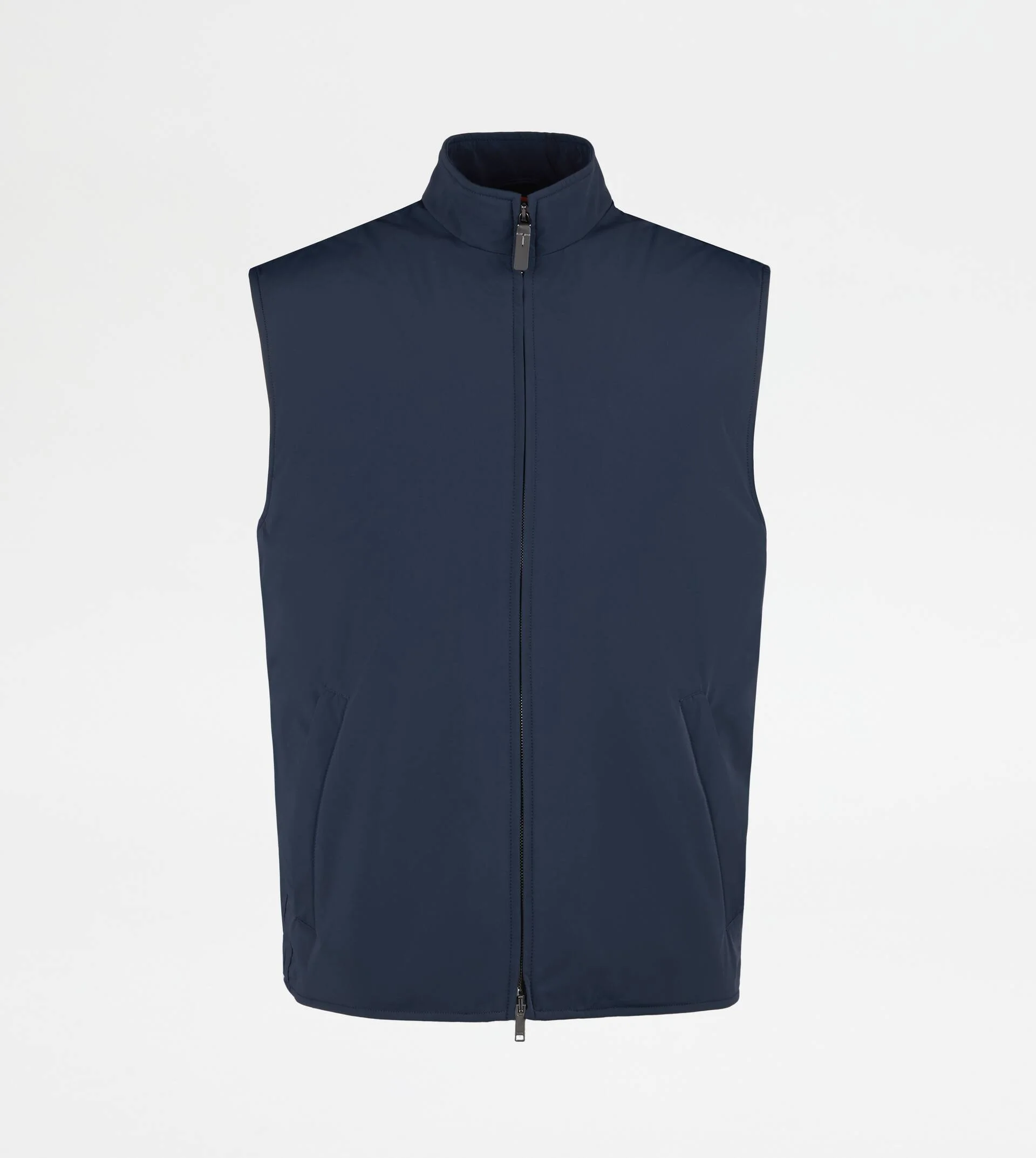 Vest in comfortable stretch fabric, with water-repellent, windproof and breathable membrane. Lined in wool jersey, it comes with two welt pockets and a double-slider zip. The leather upper zip pull features the distinctive T-stitching, recalled by the hand-embroidered Tod's monogram. Featuring a leather insert at the back of the collar, this urban garment combines functionality and cult of detailing. - Made in Italy - Water-repellent vest - Fitting: regular - The model is 6' 2'' and wears size M (IT) - Item composition: 64% polyamide, 21% polyurethane, 15% elastane, lining 100% virgin wool, padding 100% polyester, ovine leather detailing - Maintenance and care cards included