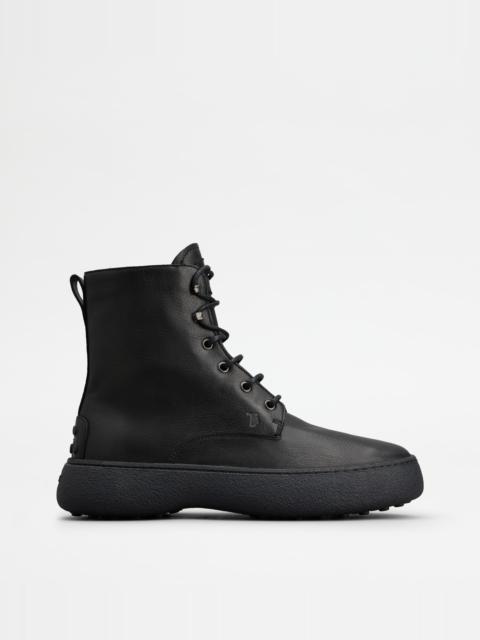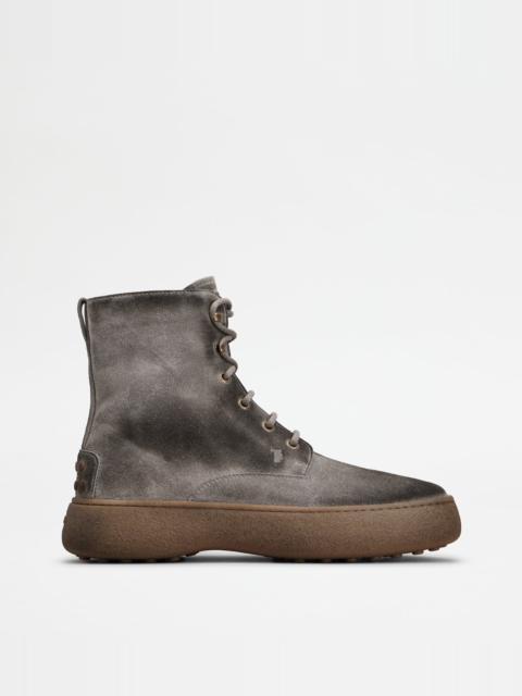 TOD'S W. G. LACE-UP ANKLE BOOTS IN SUEDE - BROWN