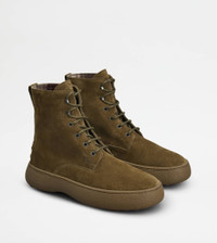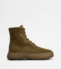 TOD'S W. G. LACE-UP ANKLE BOOTS IN SUEDE - GREEN