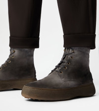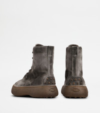 TOD'S W. G. LACE-UP ANKLE BOOTS IN SUEDE - GREY