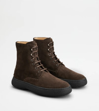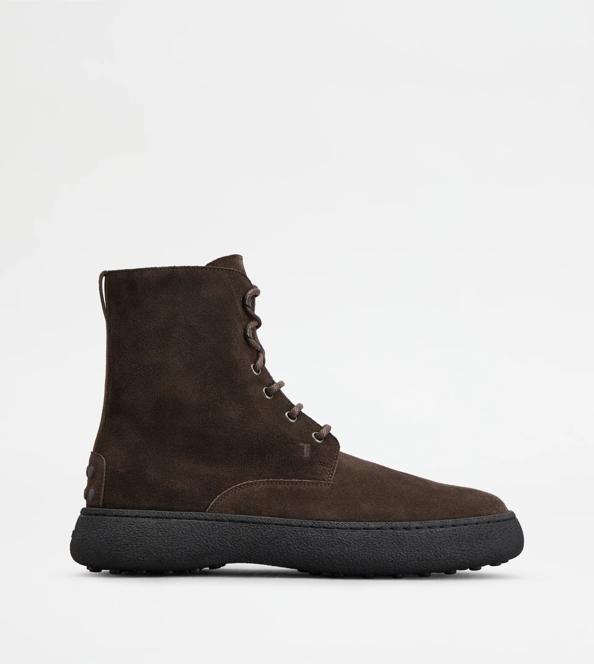 TOD'S W. G. LACE-UP ANKLE BOOTS IN SUEDE - BROWN