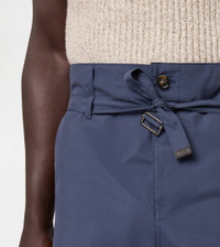 Crafted in resin-coated poplin, with a silky hand, these comfort-fit pants are characterized by a drawstring-belt at the waist. Fastened with zip and button, they feature slanted front pockets and welt back pockets, one on the leg with leather Tod's tag. A workwear-inspired model, for a sophisticated yet functional urban look. - Made in Italy - Pants in resin-coated cotton - Item composition: 100% cotton with polyurethane coating, lined parts 100% cotton, leather detailing - Fitting: comfort - Maintenance and care cards included