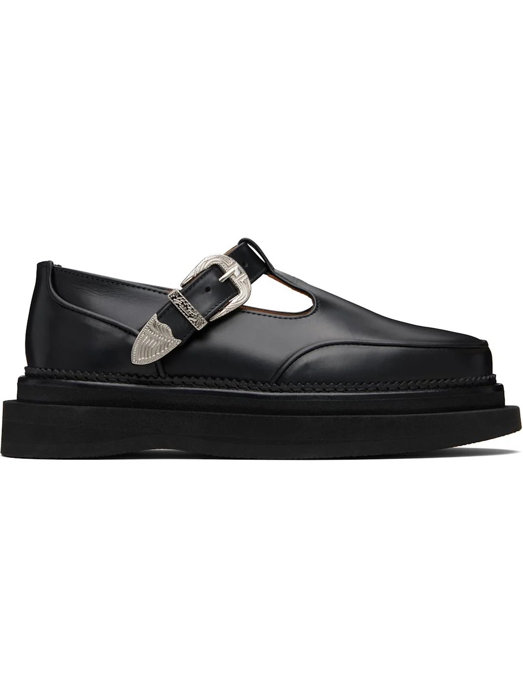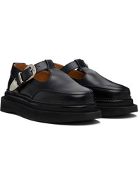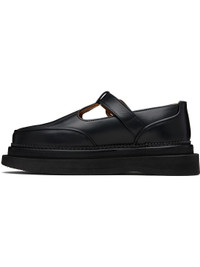 Buffed leather loafers. · Moc toe · Cutouts and pin-buckle strap at vamp · Serrated edge at welt · Foam rubber midsole · Treaded rubber sole Supplier color: Black Upper: leather. Sole: rubber. Made in Portugal 252688M231017