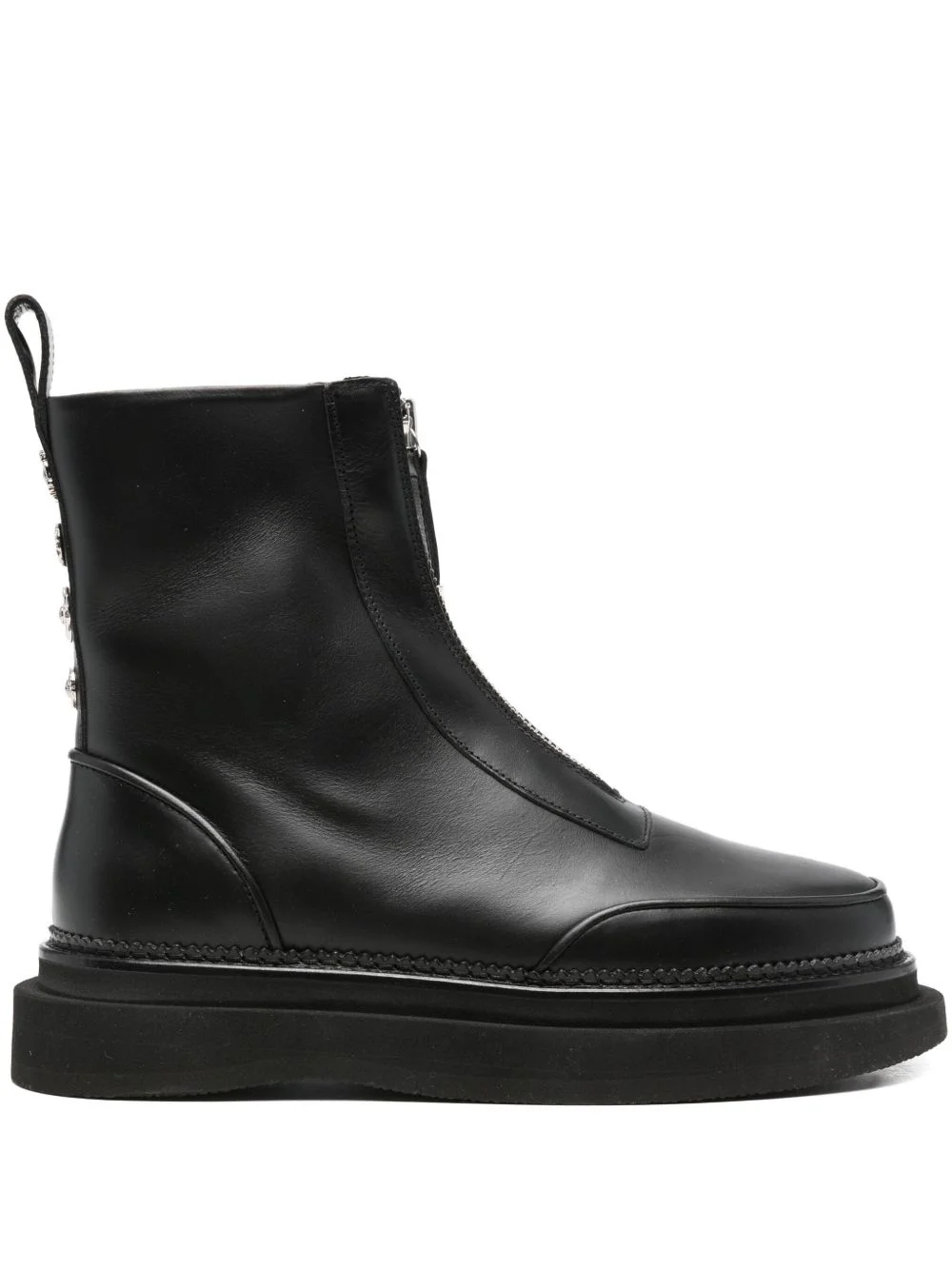 zip-front embellished boots Highlights - Black - Front zip fastening - Decorative back embellishments - Chunky rubber sole - Round toe Imported Composition Outer: Leather 100% Lining: Leather 100% Sole: Rubber 100%