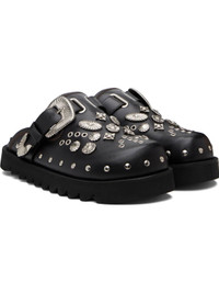 Buffed leather slip-on loafers. · Studs at toe and sides · Graphic hardware and metal eyelets at vamp · Pin-buckle strap at vamp · Mesh lining · Foam rubber midsole · Treaded rubber sole Supplier color: Dark brown Upper: leather. Sole: rubber. Made in Portugal 252688M231005
