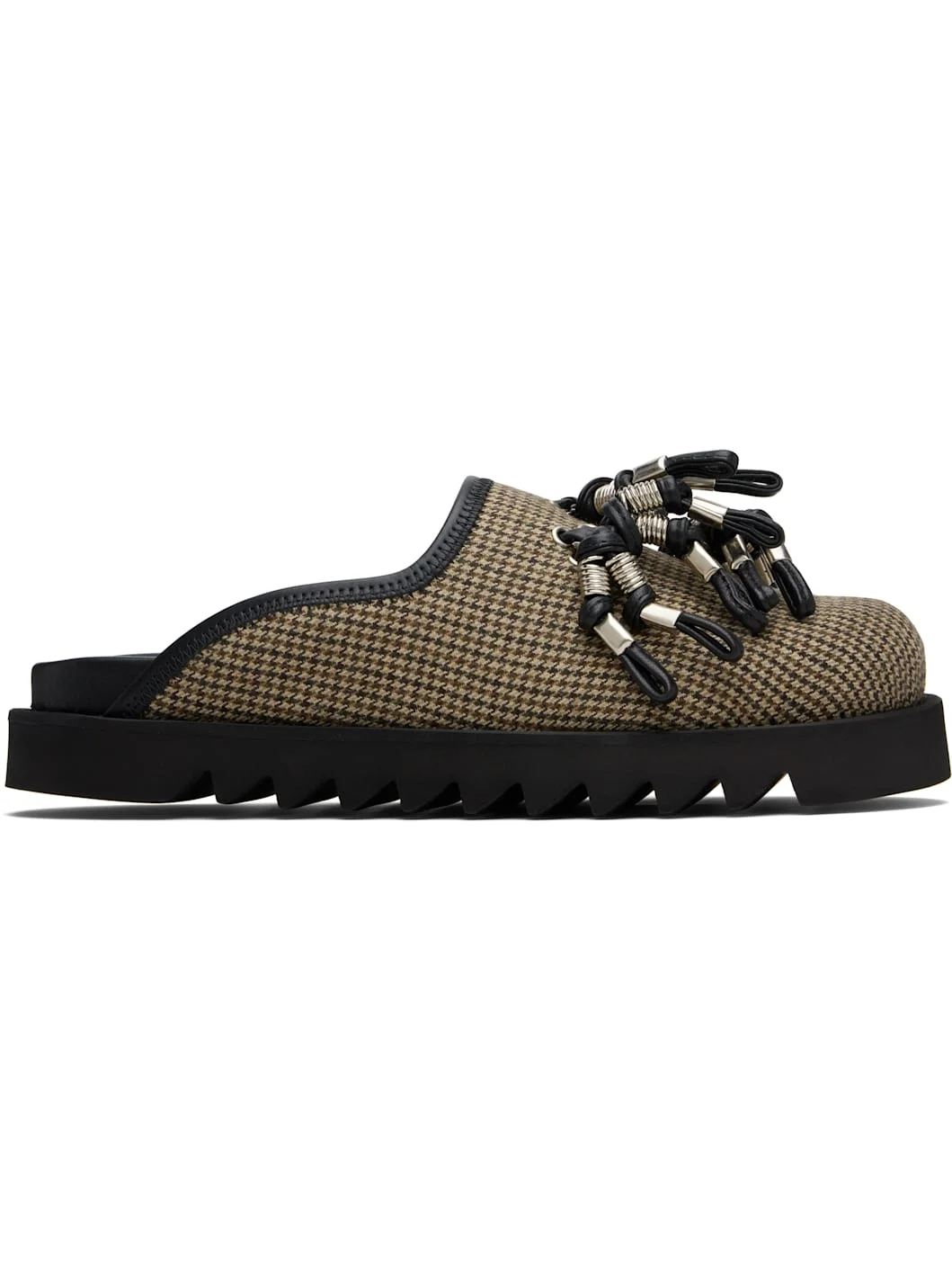 Flannel slip-on loafers. · Prince of Wales pattern throughout · Knotted straps with O-rings at vamp · Mesh lining · Foam rubber midsole · Treaded rubber sole Supplier color: Brown Upper: textile. Sole: rubber. Made in Portugal 252688M231020