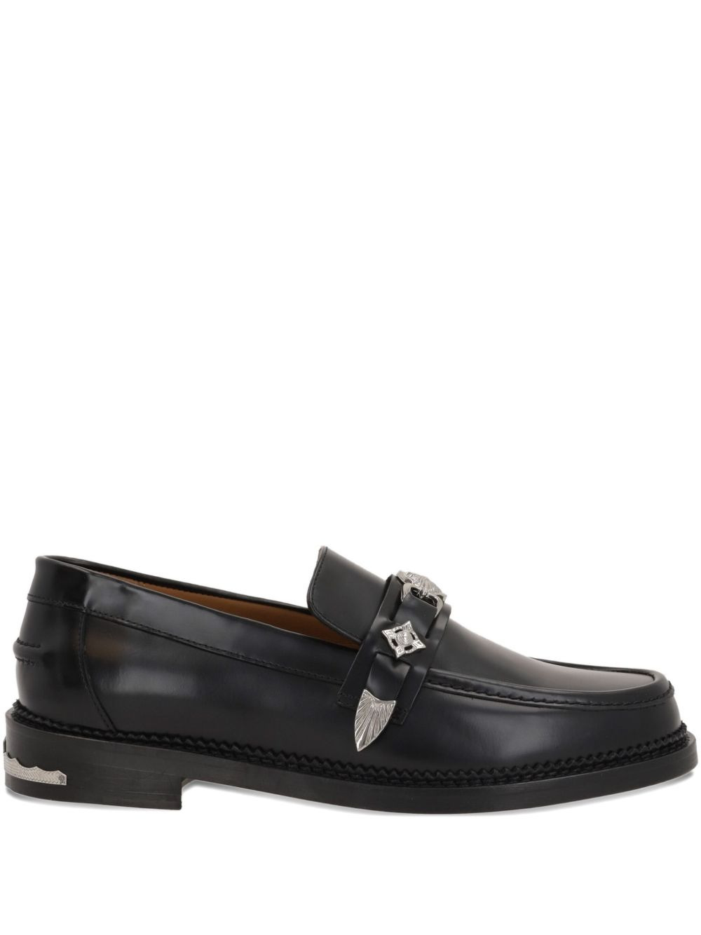 metallic-buckle leather loafers Highlights Imported Composition Lining: Leather 100% Outer: Leather 100% Sole: Rubber 100%