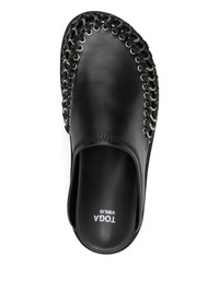 chain-embellished leather mules