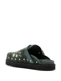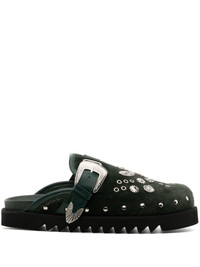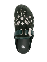 eyelet metal mules Highlights - Forest green - Corduroy - Slip-on style - Buckle-strap fastening - Eyelet embellishment - Stud embellishment - Stud embellishment - Silver-tone hardware - Leather trim - Round toe - Branded insole - Ridged rubber sole Imported Composition Sole: Rubber 100% Lining: Cotton 90%, Leather 10% Outer: Cotton 90%, Leather 10% SIZE & FIT Measurement Sole height 1.18 in(3 cm)