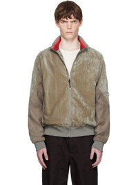 Stretch velvet track jacket. · Suede trim throughout · Paneled construction · Stand collar · Braided leather trim at zip closure · Welt pockets at waist · Rib-knit hem and cuffs · Raglan sleeves · Press-stud patch pocket at sleeve · Engraved oxidized silver-tone hardware Supplier color: Khaki Body: 44% rayon, 42% polyester, 12% cotton, 2% polyurethane. Trim 1: 100% polyester. Trim 2: 85% polyester, 14% nylon, 1% polyurethane. Trim 3: 100% leather. Lining: 100% polyester. Made in Japan 252688M202000