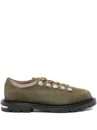 lace-up suede derby shoes Highlights - Olive green - Suede upper - Metal eyelets - Lace-up fastening - Rubber sole - Metallic heel detail Imported Composition Lining: Leather 100% Sole: Rubber 100% Outer: Calf Suede 100%