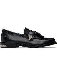 Polished leather loafers in black. · Moc toe · Strap with tassel at vamp · Signature graphic hardware at vamp and heel · Pinched seam at heel counter · Suede and buffed leather lining · Stacked leather block heel with rubber injection · Leather sole · Silver-tone hardware Supplier color: Black Upper: leather. Sole: leather, rubber. Made in Portugal 251688M231001