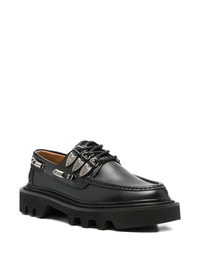leather loafers Highlights - Black - Leather - Slip-on style - Front lace-up fastening - Rubber sole - Round toe Imported Composition Outer: Leather 100% Lining: Leather 100% Sole: Rubber 100%