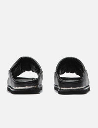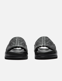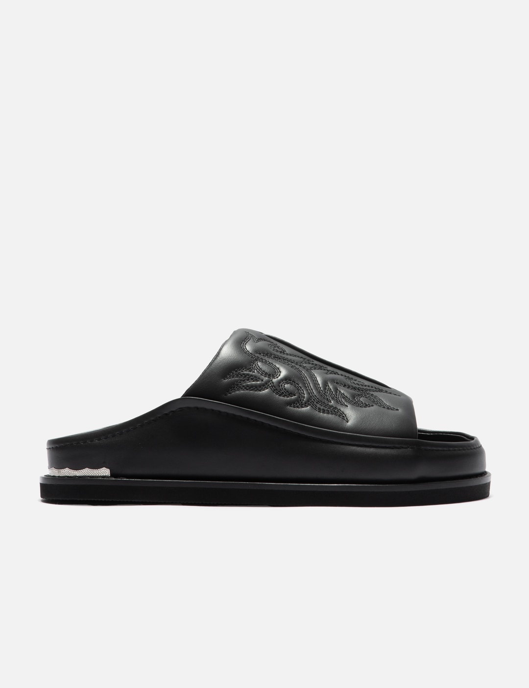 - Toga Virilis - Leather Slide - Soft puffed leather upper with embroidery - Slip-on, open toe design - Metal detail at heel - EVA outsole - Color: Black - Material: Leather, EVA - See more Sandals and Shoes