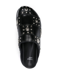 stud-detailing leather mules black calf leather silver-tone stud detailing almond toe branded footbed flat rubber sole Imported Composition Outer: Calf Leather 100% Sole: Rubber 100% Lining: Calf Leather (top grain) 100% SIZE & FIT Measurement HEEL 1.25 in(3.2 cm) Sole height 0.82 in(2.1 cm)