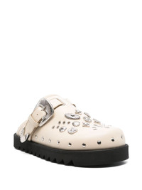 studded slippers Highlights - White - Buckle-strap fastening - Branded insole - Metal eyelet detailing - Flat sole Imported Composition Sole: Rubber 100% Lining: Fabric 100%, Calf Leather 100% Outer: Calf Leather 100%