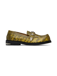 Croc-embossed leather loafers in yellow. · Moc toe · Strap at vamp · Signature graphic hardware at vamp and heel · Pinched seam at heel counter · Serrated detailing at welt · Suede and buffed leather lining · Stacked leather heel with rubber injection · Leather sole · Silver-tone hardware Supplier color: Yellow Upper: leather. Sole: leather, rubber. Made in Portugal 242688M231023