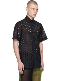 Semi-sheer cotton poplin shirt. Perforated and embroidered detailing throughout. · Spread collar · Button closure Supplier color: Black 100% cotton. Made in Turkey 231314M192063